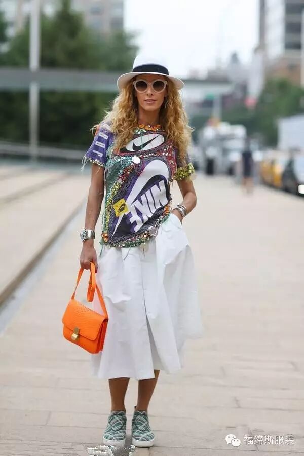 运动感T恤搭配白裙也是夏日扮靓不错的选择哦。